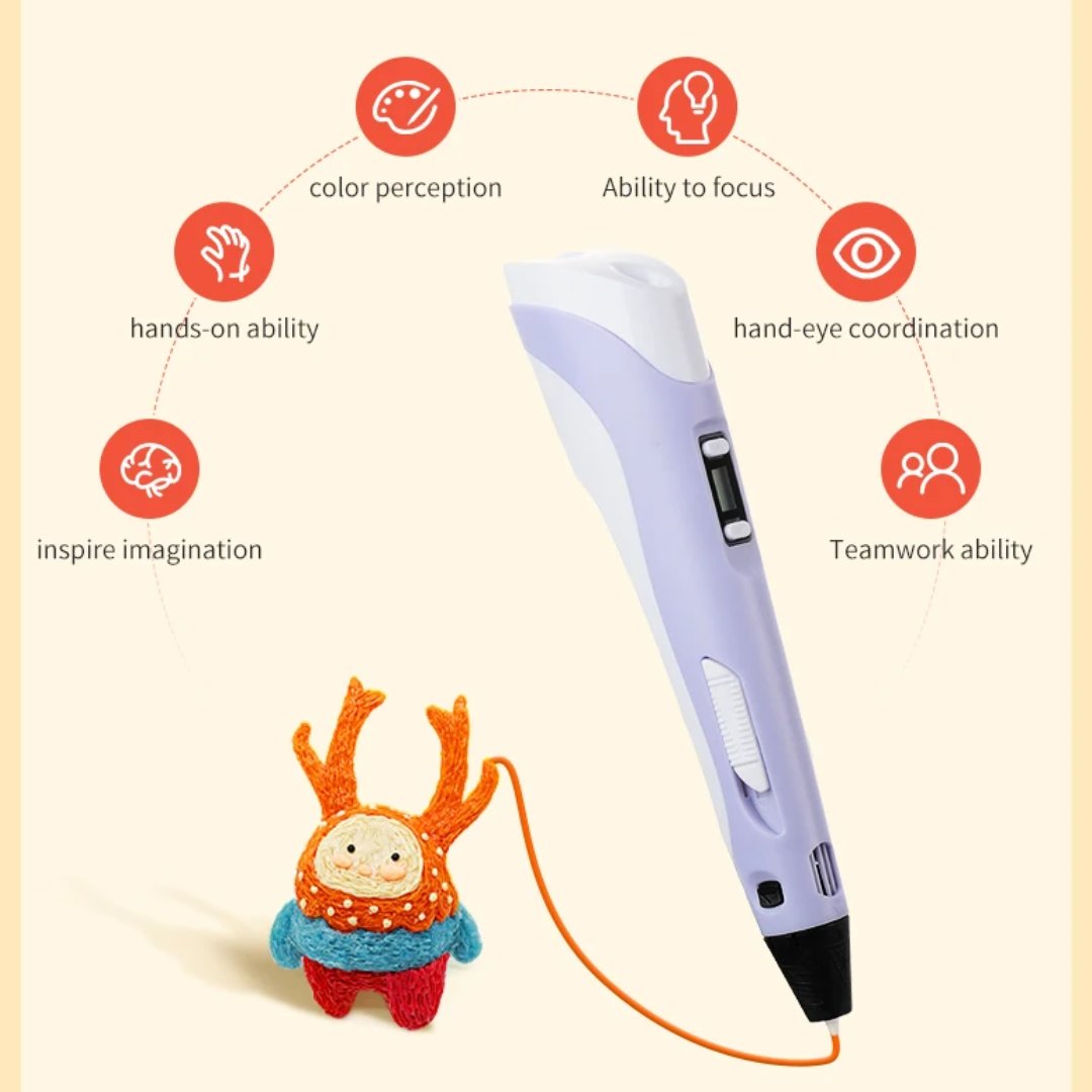Bu 3D kalem seti, çocukların motor becerilerini geliştirirken aynı zamanda yaratıcılıklarını ve el yeteneklerini artırmalarına olanak tanır. Çocuklar, bu araç sayesinde üç boyutlu düşünme yeteneğini kazanacak ve kendi hayal güçlerini şekillendirebilecekler. Set, kalemin işlevselliği için gerekli tüm bileşenleri içerir ve hem 1.75mm ABS hem de PLA filamentlerle uyumludur.