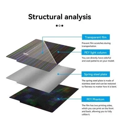Bambu Lab X1, X1C, P1P ve P1S uyumlu iki tarafı PEY kaplı yay çeliği tabladır. Bu yüzeyler sayesinde baskılar pürüzsüz çıkmaktadır.