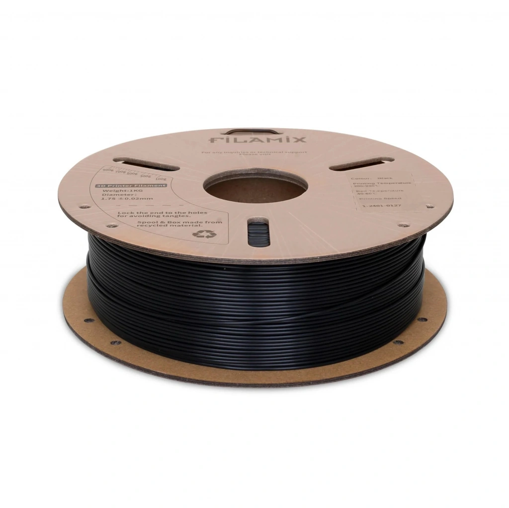 Filamix PLA Plus Siyah filament, derin ve güçlü tonu ile tasarımlarınıza premium ve keskin bir görünüm kazandırır. Siyah renk; güç ve şıklık hissi sunar.